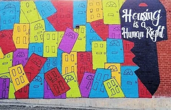 Housing is a Human Right, Not a Privilege. Mural by Gina Elizabeth Franco. Located in Greensboro, NC